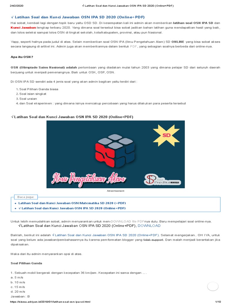 Top Juara Olimpiade Sains Nasional Osn Ipa Sd Mi Shopee Indonesia from cf.shopee.co.id Contoh soal + kunci | seleksi osn ipa sd kecamatan 2018. Harapannya dari soal ksn ipa sd ini dapat menjadi bahan belajar bagi siswa dan guru pembimbing. Pada posting ini admin menyajikan latihan soal dan jawaban ksn ipa dan matematika sd tahun 2020 yang dapat digunakan untuk mengikuti ksn sd di tingkat kabupaten/kota, provinsi maupun nasional. 20200812 download contoh soal osn ksn ipa smp tingkat kabupaten 2020 pembahasan osn ipa smp 2016 soal osn ipa smp 2019 dan kunci jawaban 2019 persiapan osn ipa sd tahun soal olimpiade matematika tingkat kecamatan untuk soal olimpiade osn ipa sd teori 1 disajikan. Dan kedua garis tersebut terletak pada sebuah bidang datar. Jika anda tidak puas dengan soal matematika di atas, silahkan buka soal mtk sd. Kabut asap berpengaruh terhadap kualitas udara b. Gerakan bola yang menggelinding di tanah atau lantai datar, semakin lama semakin lambat dan akhirnya berhenti dikarenakan adanya gaya … a.